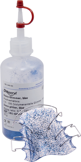 For coloring removable appliances. The glitter is added as desired to the